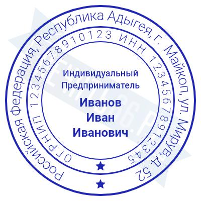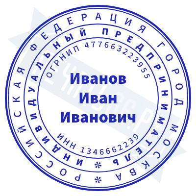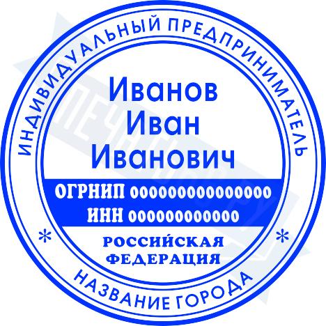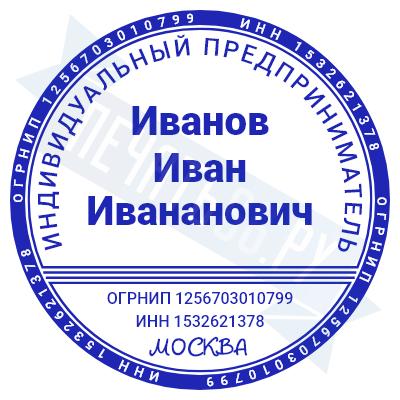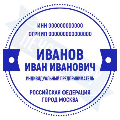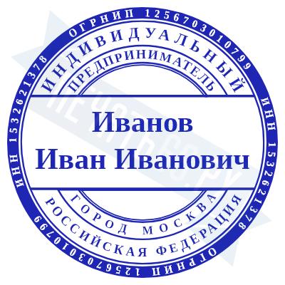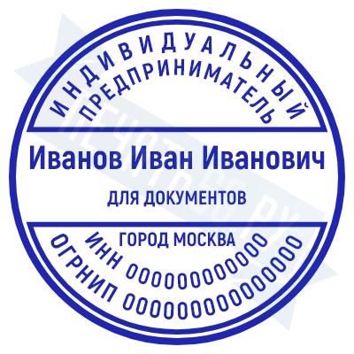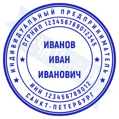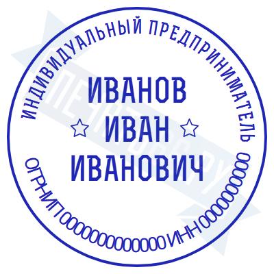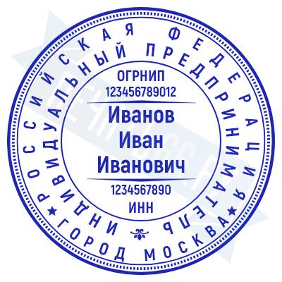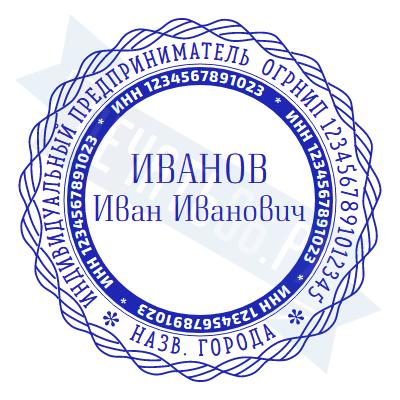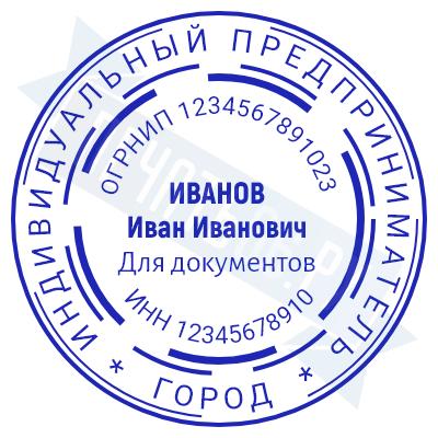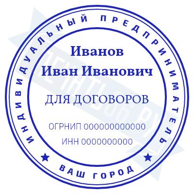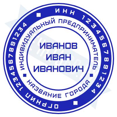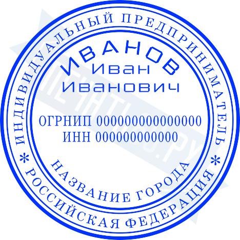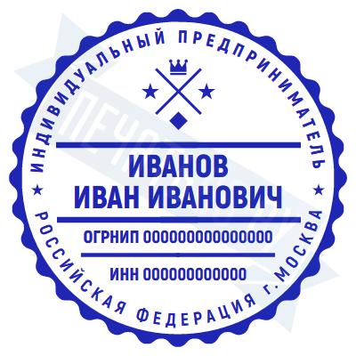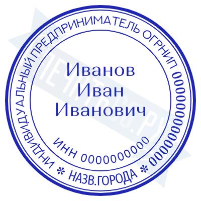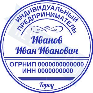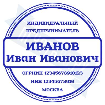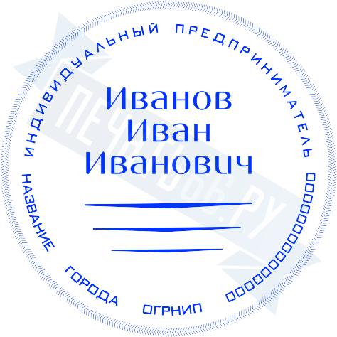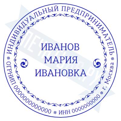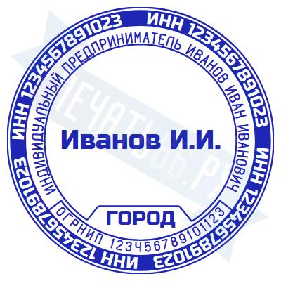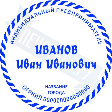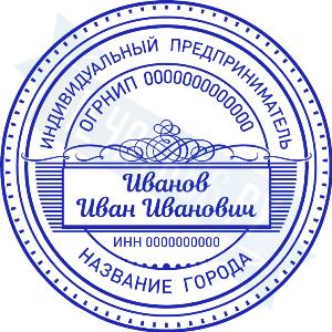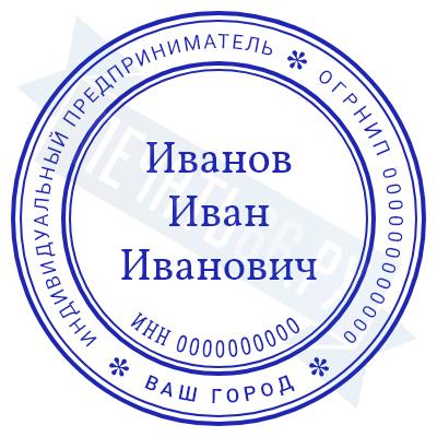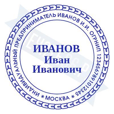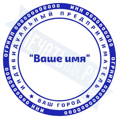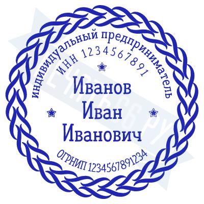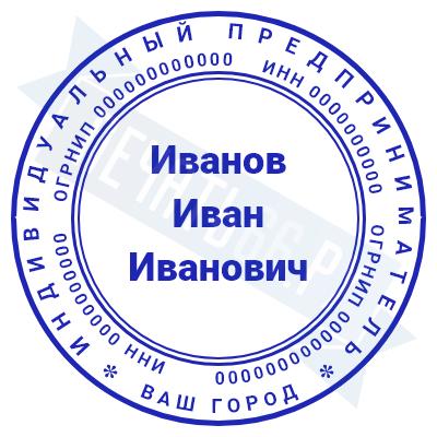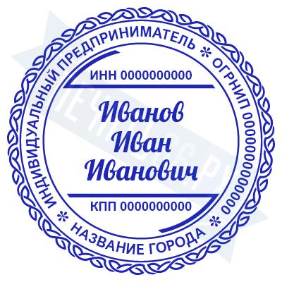 - Печать ИП стандартная на металлической оснастке Евро-2 с латунной кнопкой, 42мм по цене 2889 рублей и еще 68 видов стандартных печатей